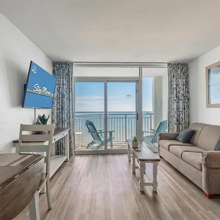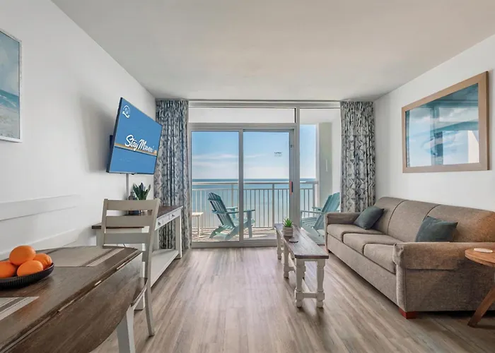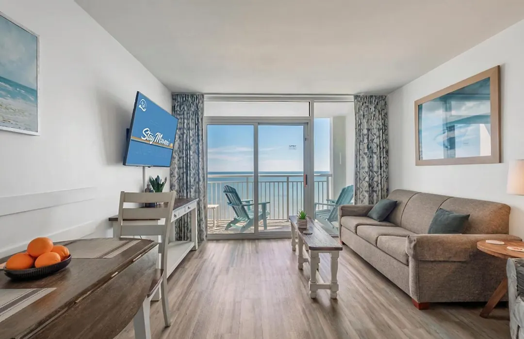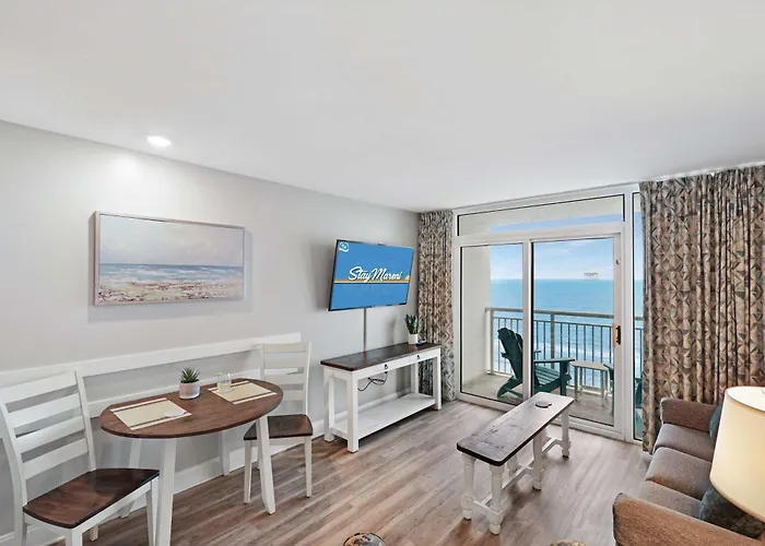 Situated around 20 minutes' walk from the Gay Dolphin Gift Cove, the 1-bedroom Beach Haven By Staymareni - Oceanfront 1Br Myrtle Beach villa features a patio with views of the sea. Offering a swimming pool, the property invites guests to visit the Hollywood Wax Museum, located 2.7 km away.